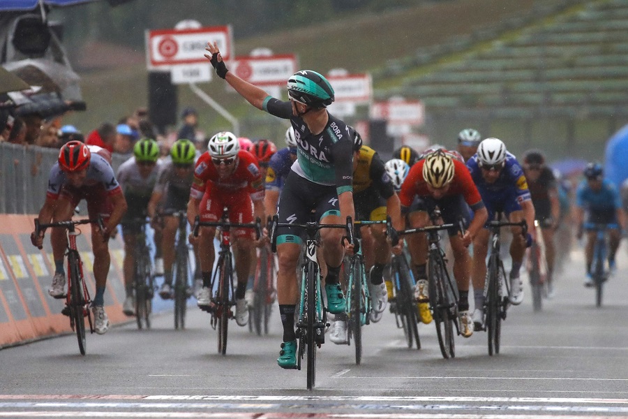 Sam Bennett (Bora-hansgrohe) bejubelt seinen ersten Giro- und Grand-Tour-Etappensieg - Foto: © BORA - hansgrohe / Bettiniphoto